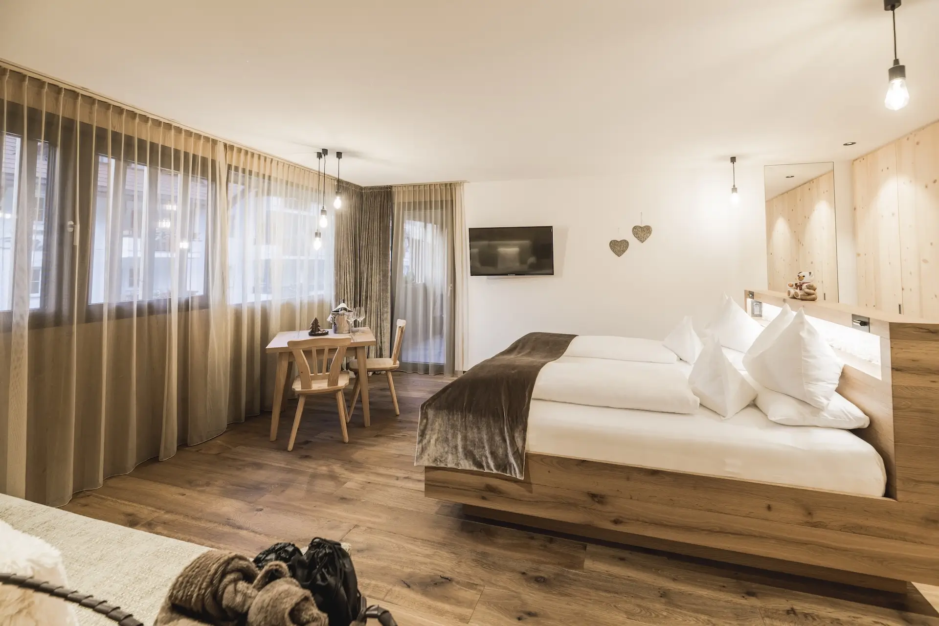 Lo Chalet offre venti stanze e suite, ognuna diversa dall’altra, progettate per essere veri e propri nidi di benessere. I tessuti di pregio, i pavimenti in legno e i dettagli curati donano un’eleganza senza tempo. Queste camere sono luminose, silenziose e romanticamente affacciate sulle Dolomiti, per un soggiorno rilassante e indimenticabile.