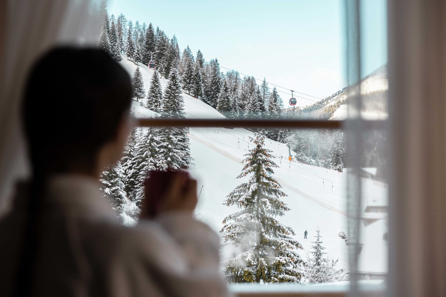 Entrare in questo hotel quattro stelle, con un panorama mozzafiato e l’accesso diretto alle piste da sci, significa immergersi in un’autentica atmosfera alpina. Ogni angolo emana calore e armonia: dai colori accesi del fuoco del caminetto alle decorazioni che richiamano la natura, fino alla tradizione della Val Gardena rappresentata dall’arte della scultura lignea su legno locale.