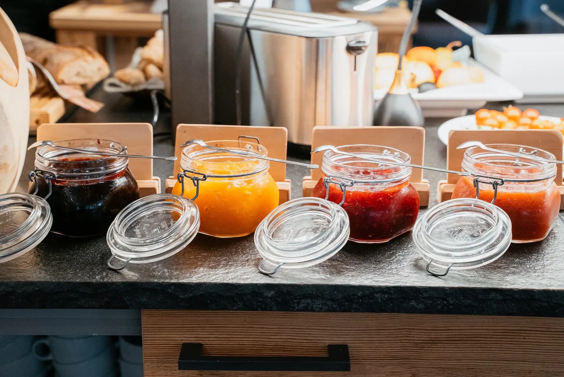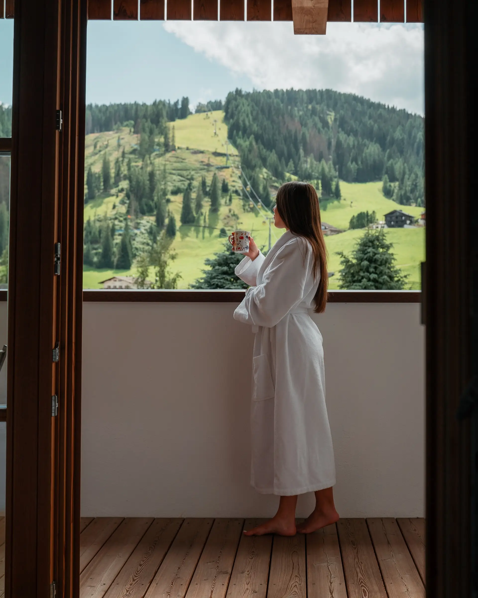 Jeden Morgen duftet es in den Zimmern aus Zirbel- und Tannenholz nach Natur. Das Frühstück ist in Südtirol ein einzigartiges Erlebnis. Es bietet eine Vielfalt an süßen und herzhaften Köstlichkeiten wie Honig, Marmeladen, Speck und regionaltypische Käsesorten.