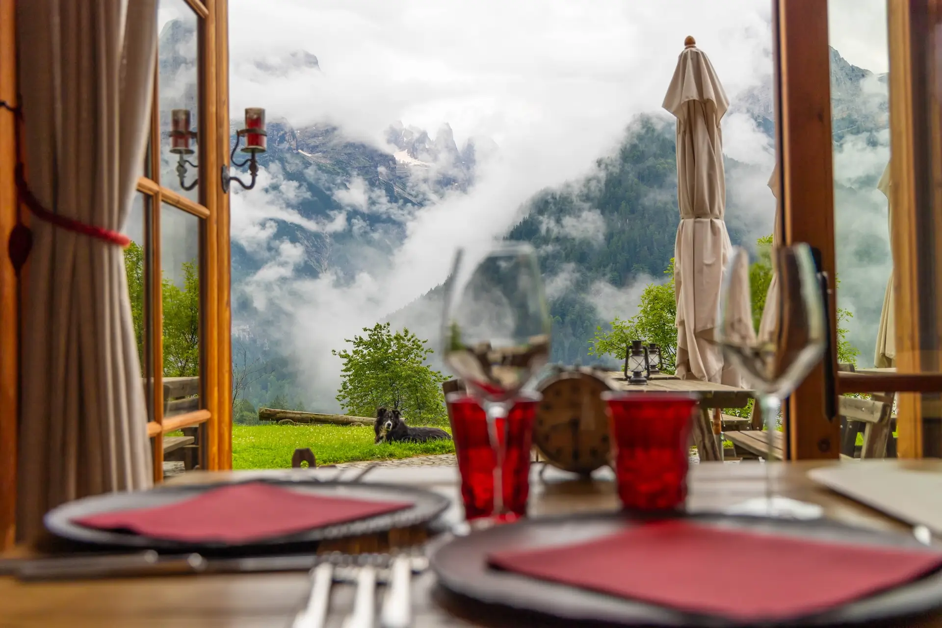 Der Service ist freundlich und familiär. Die Atmosphäre ist intim und man fühlt sich wie zu Hause. Bei schönem Wetter kann man das Mittagessen draußen genießen und dabei die Dolomiten sehen.