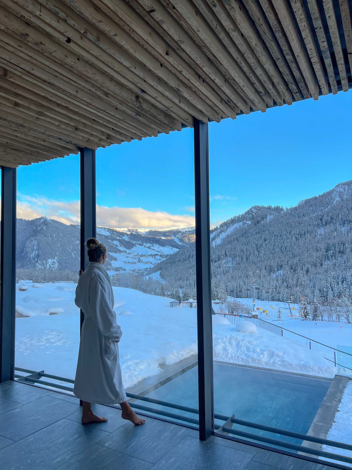 Dieses prächtige Fünf-Sterne-Hotel fügt sich harmonisch in die umliegende Natur ein und bietet zu jeder Jahreszeit ein einzigartiges Erlebnis. In unmittelbarer Nähe des Hotels befinden sich kilometerlange Wanderwege und im Winter spektakuläre Pisten zum Skifahren, Langlaufen, Skitourengehen und Schneeschuhwandern.