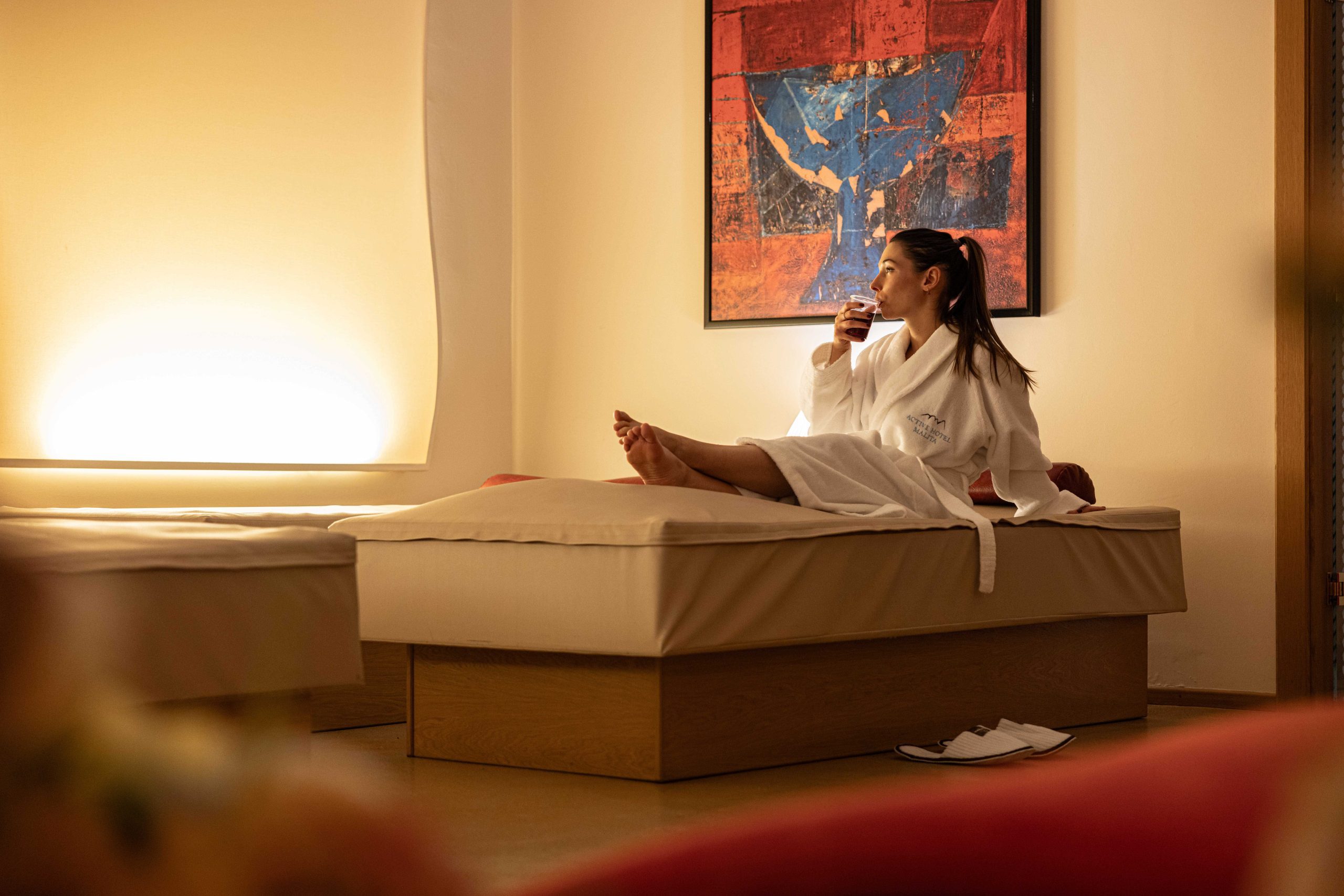 The wellness area is the space where every guest can deeply relax and regenerate body and mind, especially after returning from a day’s excursion in the fresh air. The enveloping warmth of the sauna, the pleasant humidity of the steam bath, the regenerating power of the whirlpool, the tranquillity of the chromotherapy shower and the calm of the solarium area: well-being is guaranteed.