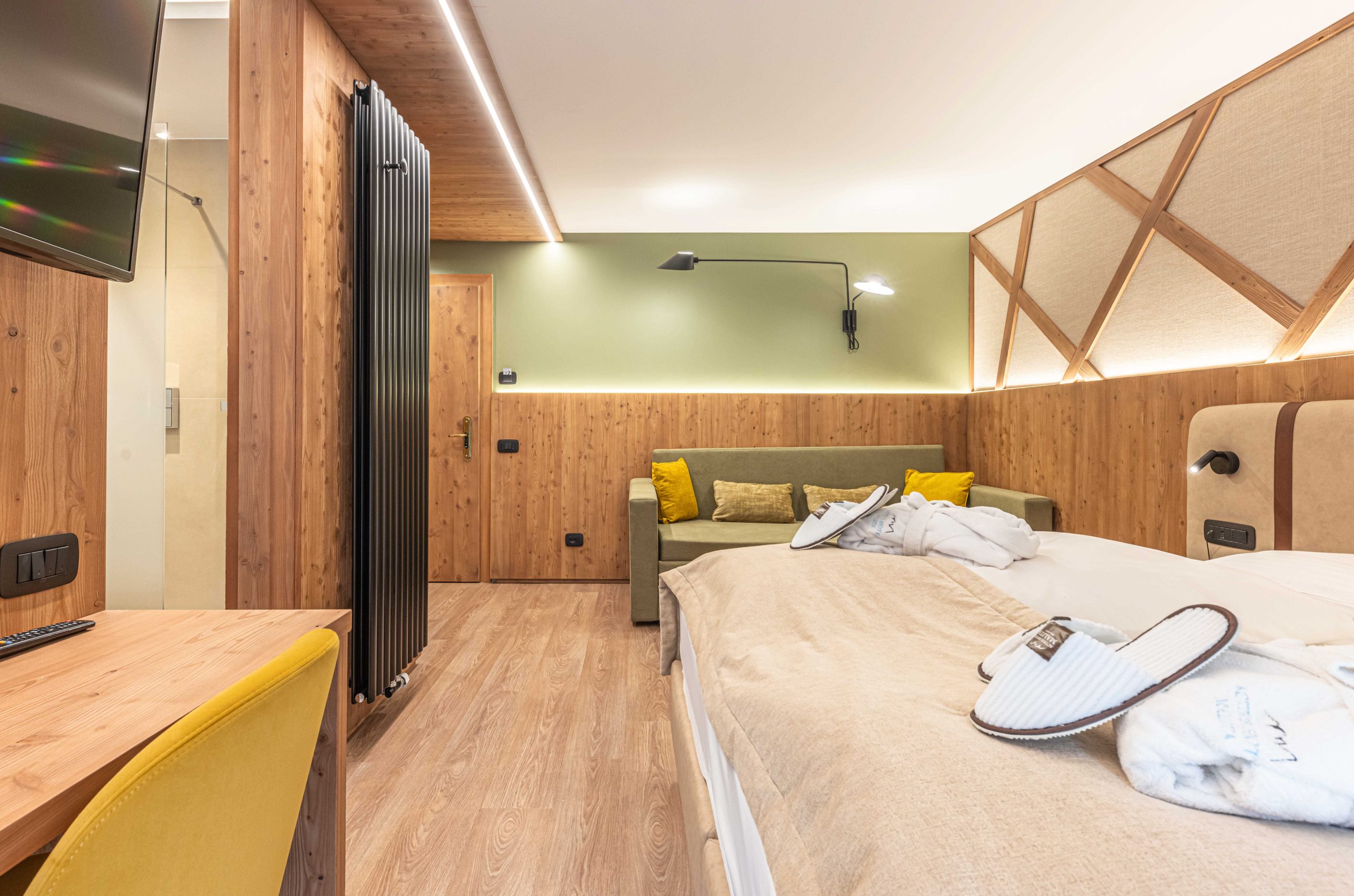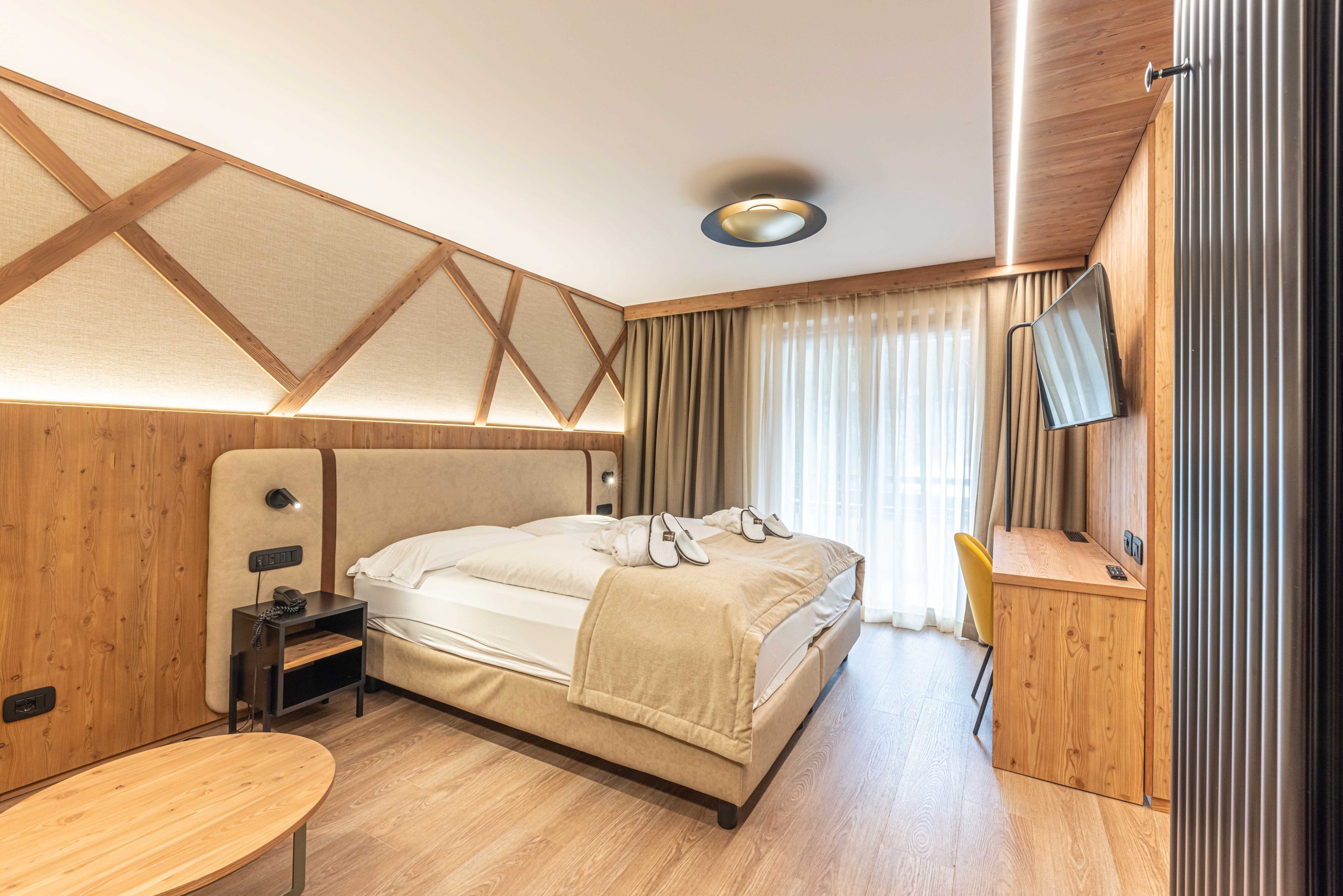 Various types of rooms are available to choose from according to your needs. Comfort is ensured in each of them, from the simplest standard double to the most luxurious and modern superior rooms “Mirandola” and “Stèle da Mont” with panoramic balconies.