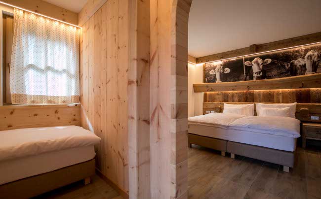 The Malga Piè farm has six recently renovated hotel rooms, all with panoramic view of the unspoilt landscape around the hotel. Each one is made with untreated natural materials, especially wood from the surrounding forests, creating a warm and welcoming atmosphere that amplifies even more the feeling of serenity that only the mountains can give.