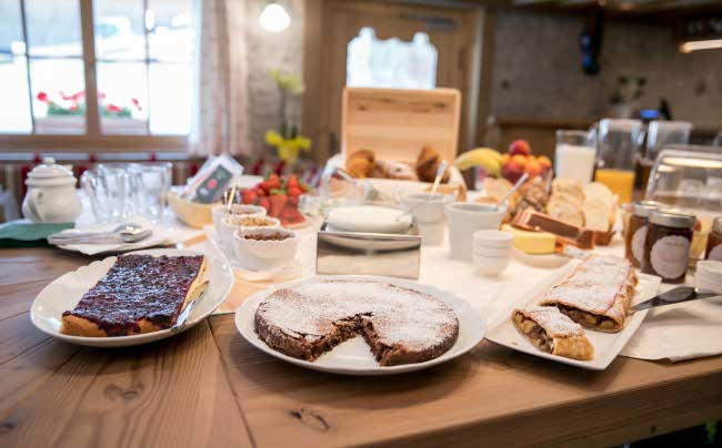 Finally, for guests sleeping at Hotel Malga Piè a large buffet breakfast with loads of fresh products such as jams, bread, yoghurt and milk is provided.
