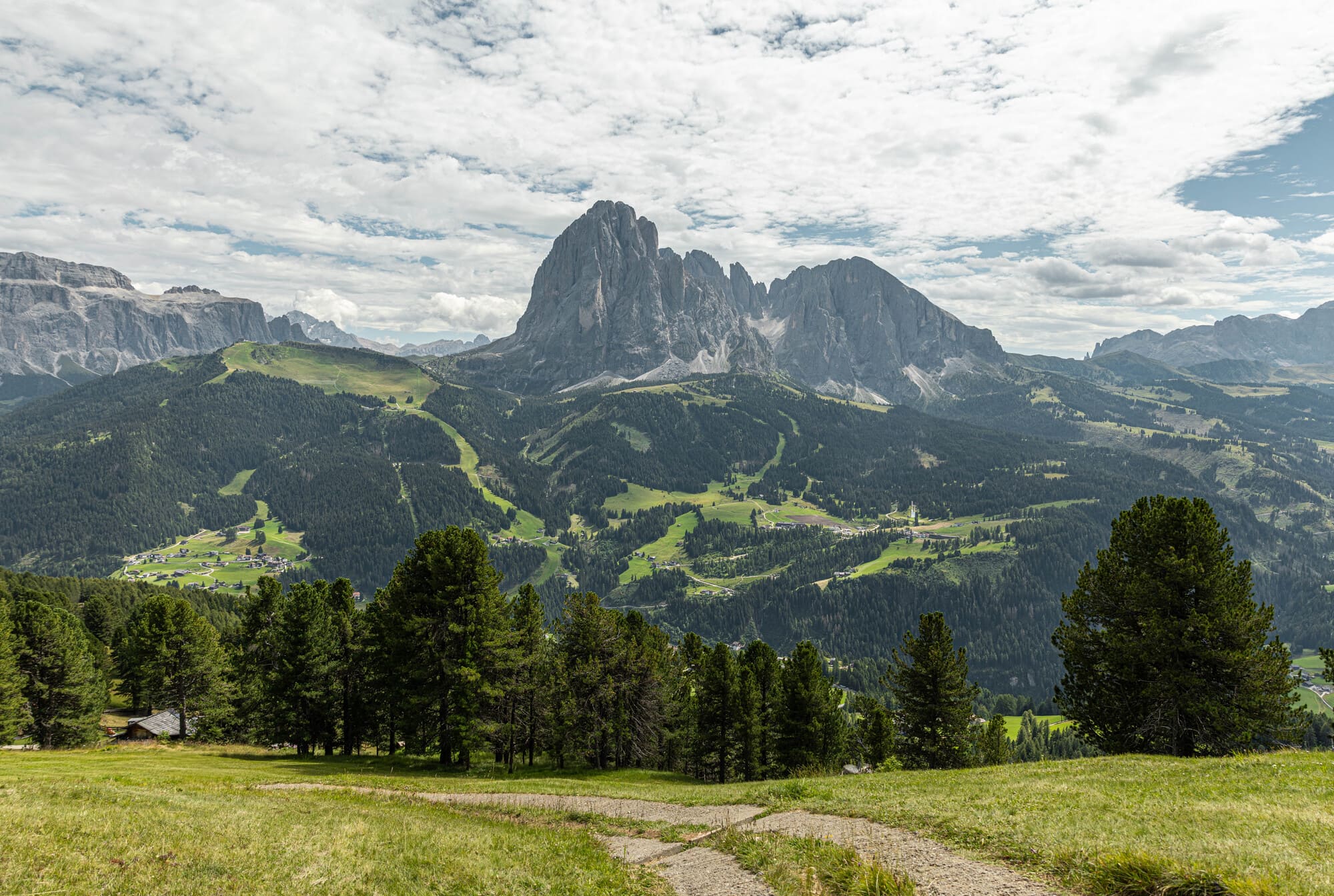 Continue along the southern side of the Sassopiatto toward Rifugio Zallinger, crossing open pastures with sweeping views of the Marmolada, the Catinaccio Group, and the Latemar. From here, you enter the most chill and panoramic stretch, immersed in the green meadows of the Alpe di Siusi.